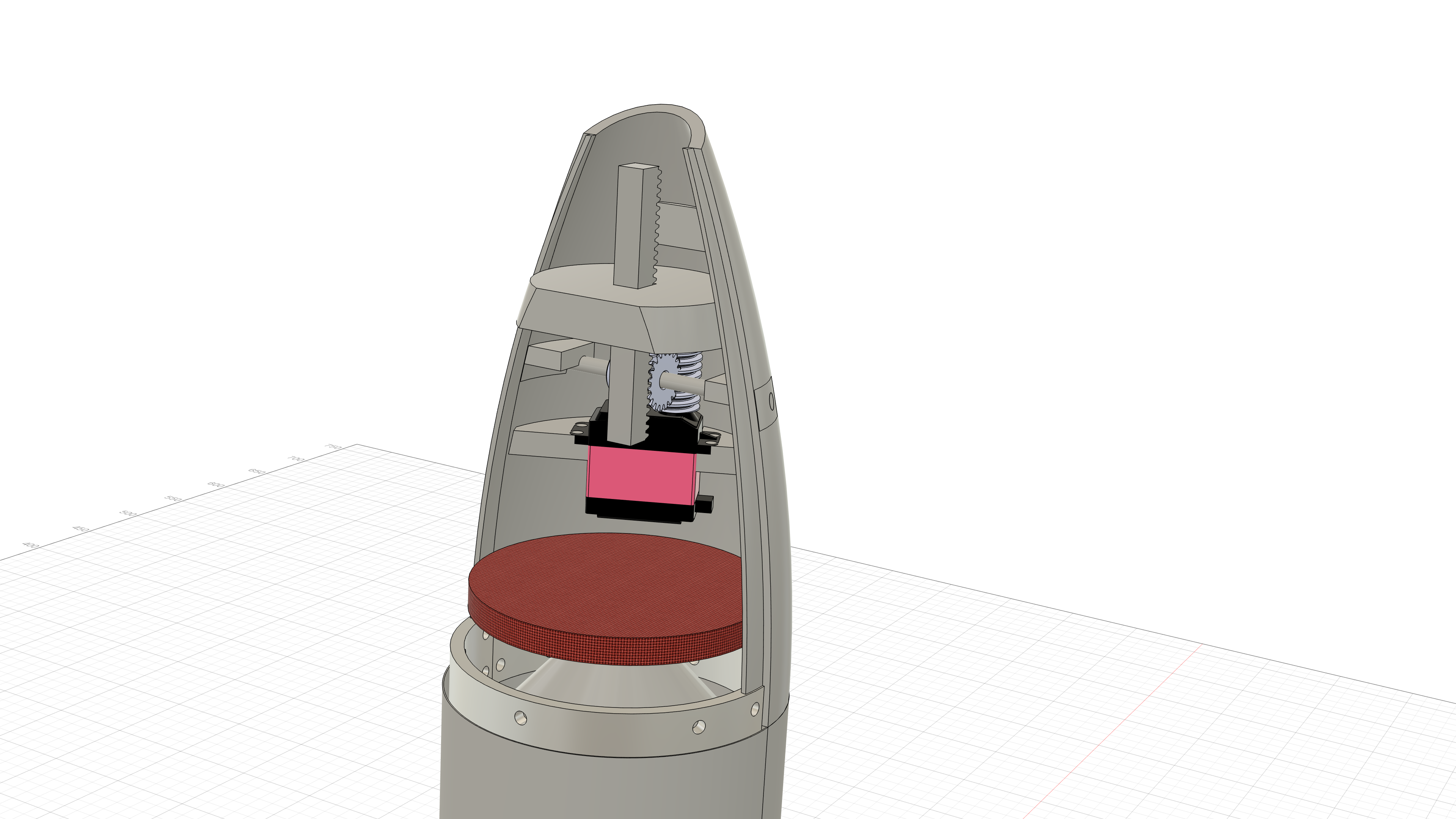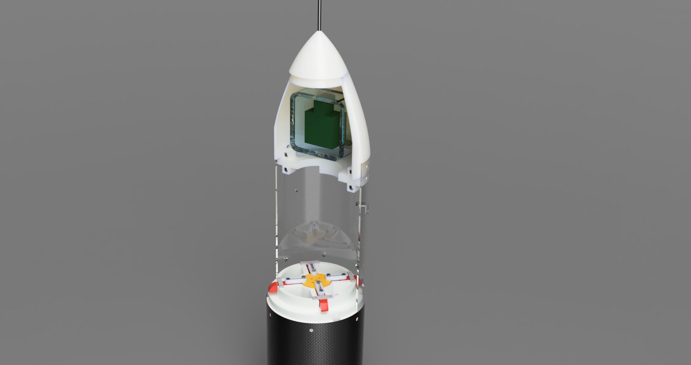 ロケットには,機体を安全に落下させるために,パラシュートを内蔵しています. 機体の一部を開放させることで,そのパラシュートを放出しています. 開放部では,それらの機構を設計・開発します.